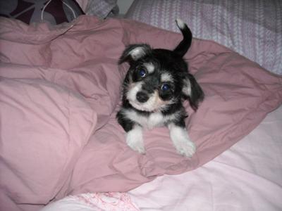 Rylee another rescue, is such a little man, 3.5 pounds and all clown. We call him Doodles or Doodlebug since he's so small. It's a wonder he even comes to his name.