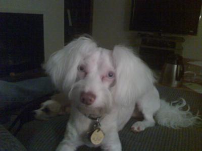 We have a tradition of naming our dogs after food items. With her pure white coat and friendly disposition, Sugar was a natural choice for our little girl dog.