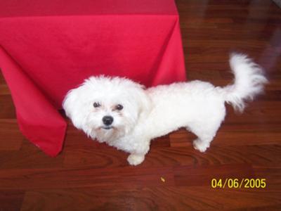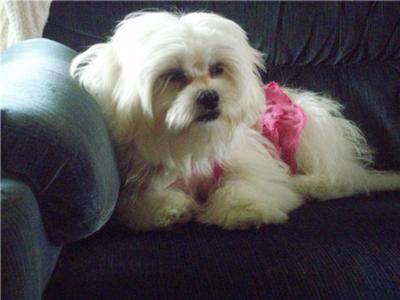 My Bichon Maltese is almost 4 years old. I have only had her for a few months she attached to me straight away. My family and I have usually had big dogs or protective dogs but recently I decided that I wanted a small dog and she was advertised in our local paper so I rang up and went to see her. Sshe was gorgeous, I sat on the floor and she sat right in my lap and didn't move.