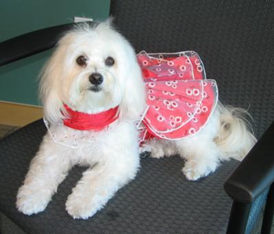 She's afraid of her Frontline Plus - something about the sound it makes when you open the package - and she hates it when you put the stuff on her! We think our Bichon Maltese is just the cutest little girl ever. Even when she looks like this -