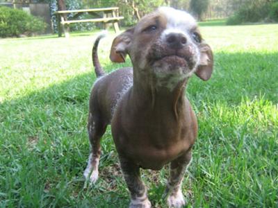 Our Maltese Chinese Crested hairless mix Frankie was a Pet Rescue puppy. Several Maltese and 1 Chinese Crested were surrendered to a local shelter. One of the Maltese was pregnant... Result - Frankie! (she only had one pup). My daughter fell in love with him as soon as she saw him and brought him home to be our third dog.