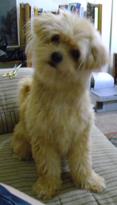 First of all, I was NOT a dog lover. Four out of five people in my office brought their dogs to work and it actually was incredibly annoying to me... UNTIL … I saw this unusually precious puppy in a cage with several puppies of various breeds at a Trades Day exhibit. I asked the lady tending the kennel if I could hold her & asked what breed she was. She said she was a Chinese Crested Powder Puff (not a breed I'd ever heard of) Maltese mix or ‘Crested Malt’. Her mother is a registered Chinese Crested and her father is a registered Maltese.