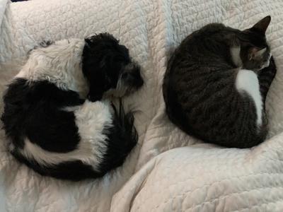 This is my baby boo, Tiberius! Dachshunds and Maltese dogs are rarely crossbred, so I’d never seen, or heard of a Mauxie, til I bought him from a pet store on an impulse buy. The best thing I’ve ever done that I didn’t think through lol! He’s my joy, he really is. The first year was challenging with the potty training and all, but that’s any dog. He’s the perfect apartment dog; he barks when he should and stays quiet while I work all day from home. He’s my baby, my son, my best friend. I’ll go crazy when he moves on from me…but I try to not think about that! He has a cat brother named Claudius and they love each other to bits wrestle all the time.