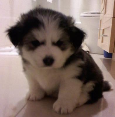 My 3 month old pup is a Maltese Husky mix or Maltsky. Mom was the Maltese and Dad was the Husky. Purely accidental breeding, but he sure came out as a show stopper. Of course all the dogs in the litter do not look the same. Some has more Maltese features and some have more Husky features. But the all have the Husky markings.