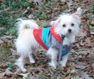 New picture of my Chihuahua Maltese Toby (now 8 months old and 5 pounds). His hair has grown so much, and I find that I have to brush and comb him daily to keep it tangle free.