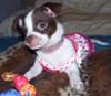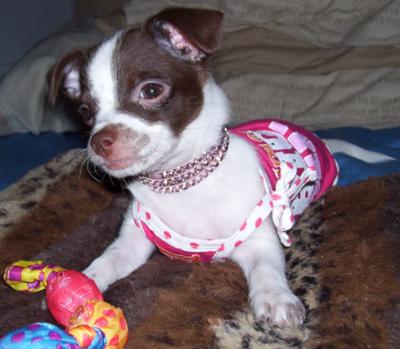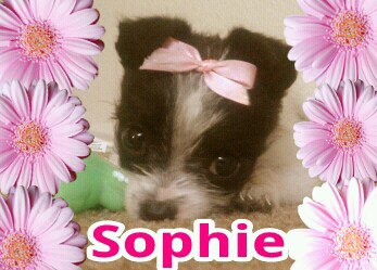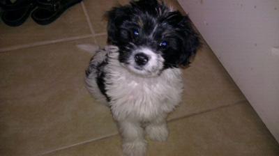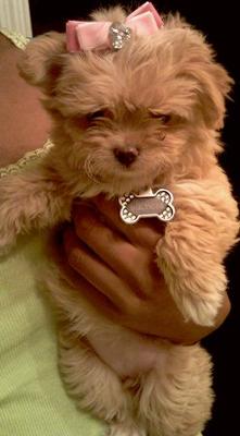 Sophie is a Malchi puppy that was born on 1/1/11. I just got her last week and she is already the love of my life she goes everywhere with me... LITERALLY!! she is about 3 months old and weighs 1.5 lbs and im wondering if this is a normal weight because it seems very small for a 3 month pup but I wouldnt really know. She has the best personality she never makes a peep I've heard her bark once haha and when she plays she prances around like a horse its adorable. She loves to sleep on her back but wrapped around my neck its hilarious. I am so lucky to have her she really is an amazing dog.