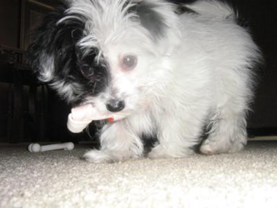 This is my new Malchi puppy, Duncan. I got him last month, but he is 7 months old. Born on 12/28/09. I bought him from a groomer who got him and his sister from a breeder. The groomer kept his sister.