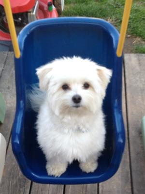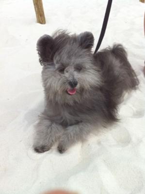 Charlee is turning 1 or should I say 7 on the 7th of July, when I was looking for a dog I didn't think I was going to get a Maltipom I was looking for a Maltese. I was under the impression he was a Maltese. Then the owner informed me he was a Maltipom. He was so cute and black as could be with a tip of red at the end of his hair and his nose with a touch of grey, he was a present for my daughter's eighth birthday. When she saw him that was it, I didn't look anymore.
