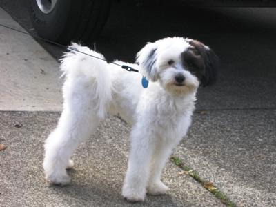 My Maltese Poo Lily has a distinctive black spot over one eye & ear. She stops traffic because of it and then they stay stopped because she loves people and other dogs so much. She has a very loving, friendly and cheerful disposition.