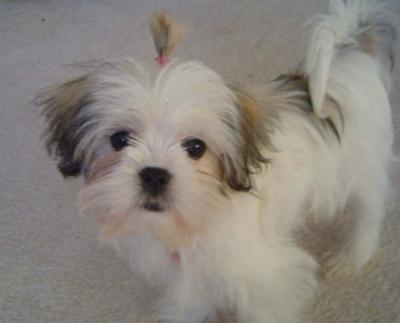Cutie Pie is a Maltese Shih Tzu mix also known as a Malshi or Shiatese. He is now 3 years old. He is very loving and sweet tempered. Once he gets to know you he is very sweet, but he needs to warm up to you. I sometimes call him "barkie boy". He does bark at anyone who passes the house, whether on foot or in a car, so he is very territorial.