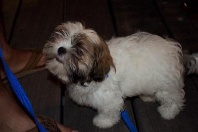 Ollie is one of the best Maltese Shitzu puppies and such a precious addition to our home! I can't imagine not having him here. He is so smart........loves EVERYONE........and such a lap dog! He was very easy to potty train... mostly uses wee wee pads. Actually he did it on his own from the moment we got him, so we can't take any credit for that:) Our Maltese Shitzu puppy is 18 months old now with a brand new puppy cut....and he knows he looks adorable... people tell him wherever we go. His favortite outing is to Lowe's... they actually love seeing him come!