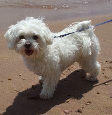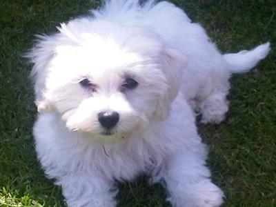 Buddy is a playful and lively 2 yr old Maltichon. His fur is not quite straight and not quite curly and of course, white. He is a little bit naughty, but has not done any seriously bad things. He is great around kids. My Bichon Maltese does have a problem barking at people walking by or people that come to visit and he is protective of his family. All in all, my Maltichon is a good dog!