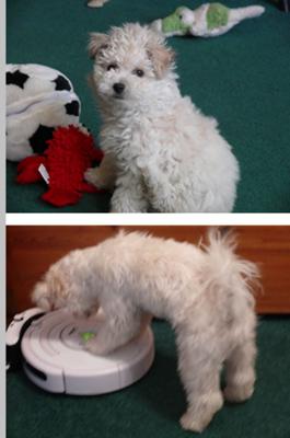 Romee is a mommies boy. He is a 2-yo Maltichon who loves to sleep with his head on my foot/ankle. He follows me everywhere and does not let me out of sight. He gets that Bichon-buzz every so often where he runs around the room for no reason like someone is chasing him.