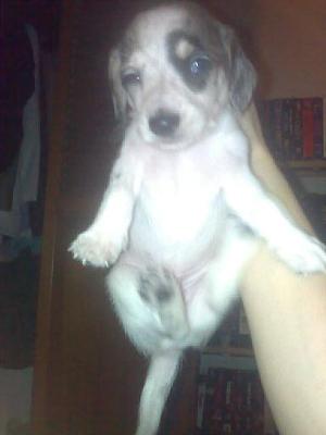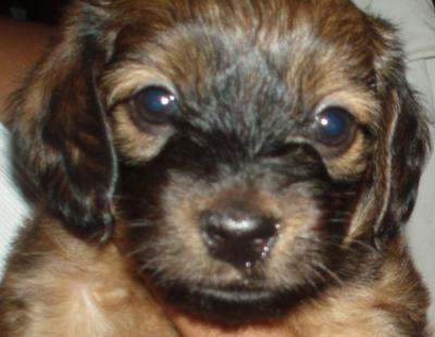 I just got one of the cutest Mauxie puppies ever! He is 8 weeks old, and is looking more like a Dachshund everyday. He has one brown and one blue eye.