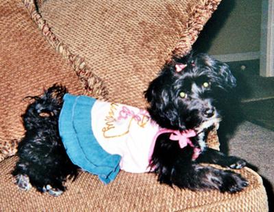 She loves her clothes & hair bows. She has accumulated quite a wardrobe. She goes to work with me everyday and thinks she runs the office. She recently completed basic training where her teacher nicknamed her "Maggie the social butterfly."