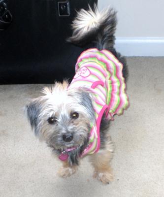 The first time I told about Little Miss Muffit (Morkie), she was only four months old and 3 1/2 lbs. Now Muffit is a year old and weighs