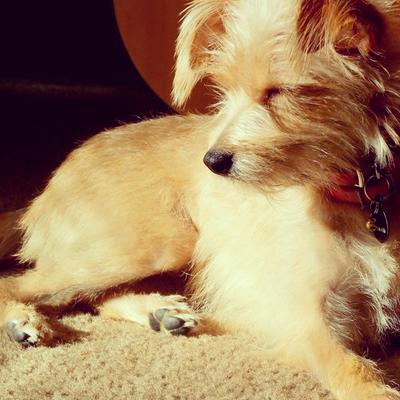 Nana is 3 years old. Love the Maltese Miniature Pincher, perfect mix of protector and comforting dog.