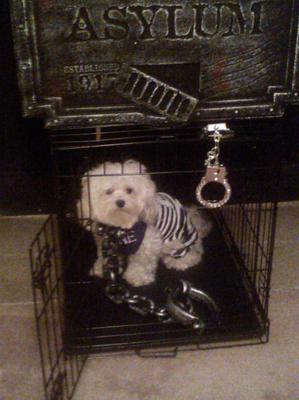 Don't let the sad face fool ya. This inmate is bad to the bone. When he gets upset, watch your step, because he will give you a big surprise in several different locations of the house. Oh and don't let him get upset with another canine in the complex he will circle around when they aren't out and poo in their yard, kick up grass and trot off with his head heal high. Yes this inmate is bad to the bone.