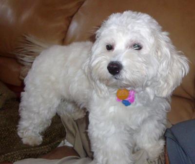 She was born in Panama. We had Fusy, a Cocker 7 years old female dog and adopted a 5 years old Maltese. We thought Fusy was not fertile anymore, until one day my daughter called me telling Fusy had just given birth to a little pink puppy right under my bed. That was our Maltese Cocker Spaniel mix Hally.