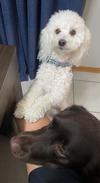 Teddy absolutely loves my mom and cuddles with her all night, he also gets super jealous when anyone else hugs her or kisses her and start barking. 😂 He has a fluffy/loosely curled fur and will let anyone cuddle him or pet him. He loves all people and loves to go on walks cause that means lots of pets from people! He doesn’t like other dogs very much unless they are smaller than him and don’t have much energy. Teddy lays around all day on the couches. He is 5 years old.