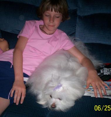 I named she and her sister foo-foo names as they were so scraggley and matted and dirty when I got them I thought it would make them feel better about themselves if they had great names. And it worked they are little princesses today and rule our home along with our big male Maltie Daye Tripper!